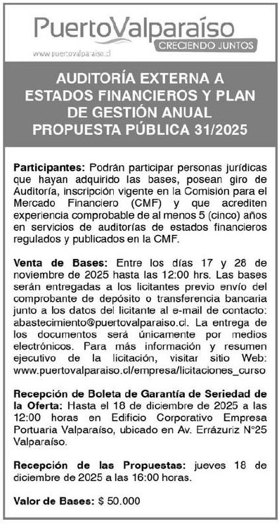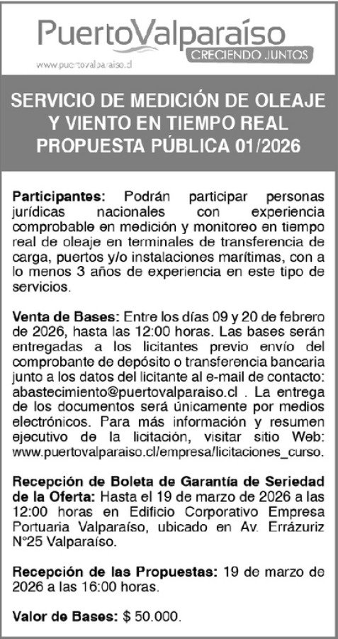 Correo Electrónico: abastecimiento@puertovalparaiso.cl